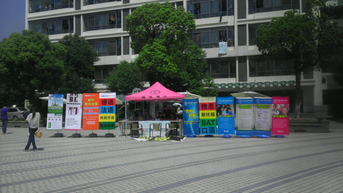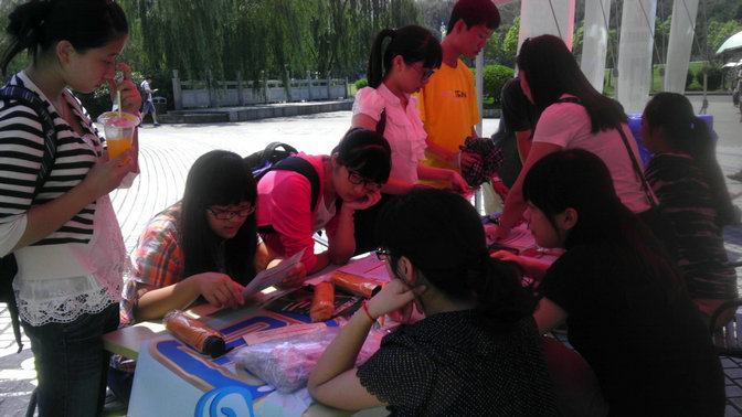在這4天的時(shí)間里,我們在澤園食堂附近發(fā)單頁,在潤園宿舍公告欄貼起了我們的海報(bào),在潤園食堂設(shè)了咨詢臺,到處都是我們歐風(fēng)的身影!