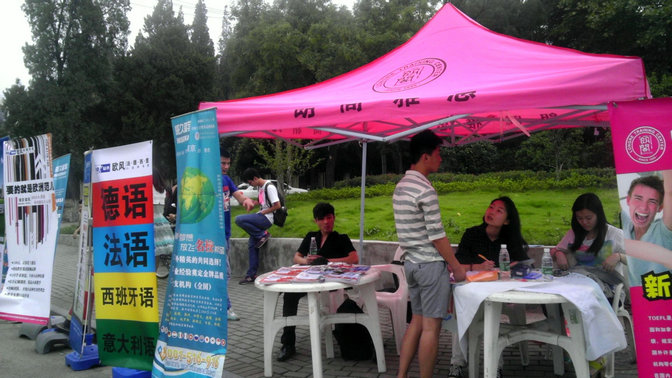 9月12日,南京歐風小語種在南林的香樟苑美食廣場舉行了我們的戶展活動。