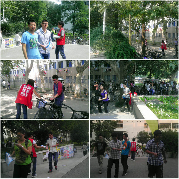 無論是校內的醒目海報還是我們發的宣傳單頁,南理工的同學都很認真的仔細閱讀。