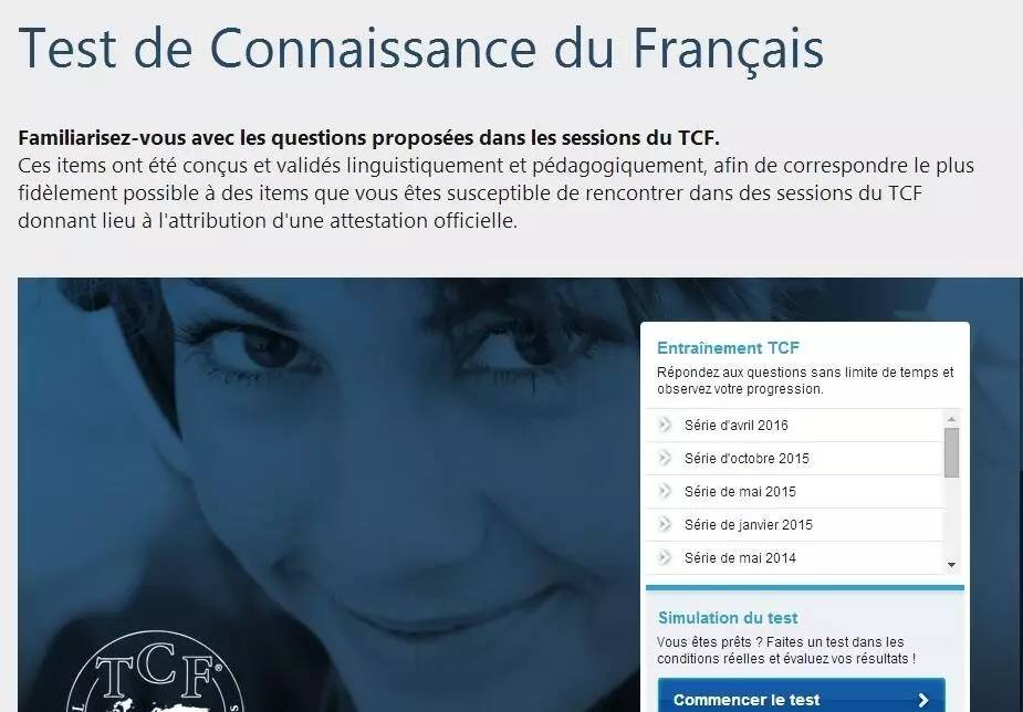 再在左邊那一列選擇TCF,然后在這個頁面請點擊Commencer le test。