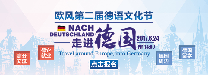 歐風第二屆德語文化節 ![]() 主辦方:南京歐風小語種培訓中心 時間:2017年6月24日14:00-17:00(周六)