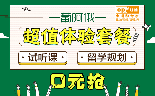 高薪葡語 優美動聽的葡萄牙語在全世界有1.8億人口在使用,國內葡語人才存在大量缺口 歐風選修課 免費體驗 外教口語角/留學分析/戛納電影賞析/電影橋段對話練習/歐洲旅游攻略 你剛剛想學一個小語種,不知是否感興趣,到底難不難學? 沒關系,來歐風參加歐風選修課,零距離感受它們的魅力,和外教、留學同學、企業高管近距離交流 如果上完選修課,你依舊在堅持學習小語種的熱情,那就繼續學習吧 小語種幾大就業方向 高校教師、外企和中外合資企業、外貿公司、新聞傳媒機構、旅游公司、留學培訓機構、文化傳播公司 學小語種能為你的專業加分么? ……………………………………………………………………………………………………… 班級名稱: 葡萄牙語高級班使用教材: 《速成葡萄牙語》15-20課適合對象: 有120課時左右葡語學習基礎者課程內容: 能夠明白寫出來或是聽到的一些獨立的句子,那些經常在貼近自己環境中使用的用法(例如,個人信息,家庭資料,購物,附近環境,工作),能夠討論一些簡單而日常的任務,為此交流一些意見。能用簡單的方式描述他的組成,他的環境,提及一些有關貼近自己需求的主題。 課程特色: 1. 專業:歐風專業師資團隊,細致講解所有核心考點,夯實基礎; 2. 生動:豐富案例精講,循序漸進的課程結構,深入淺出; 3. 定制:針對學員現有水平精準定制課程內容,因材施教; 4. 反饋:全程跟蹤學生的學習過程,對學生的學習與生活進行指導,在歐風,我們不僅僅是老師,更是學生的朋友; 5. 精準:精準剖析, 梳理學科重難點,提升應試能力;