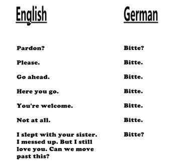 上圖是一個小小的玩笑啦。事實上,無論你想表達“不客氣”還是“請求”都可以使用“Bitte”這個詞。 德語高頻詞里相對萬能的詞還有das,da等。 為什么說是萬能詞呢。即使你不會說德語,身邊剛好有你想指的那樣物品(可能是桌子啦、椅子啦、黑板啦等等),你只要指著那樣東西說“das”(這個), 對方多多少少都可以理解你的意思。 da可以指代“這里、那里、這個、那個”,這個相信大多數初學者都知道的。 另外想給大家安利一個詞:Dings(或 Dingsda)假如你突然想到一個人,或者一個物體,卻不記得怎么說的時候,就可以用Dings來指代哦。 3.名詞大寫易分辨 凡是名詞,首字母必須大寫。 剛接觸德語的時候,大家可能會經常忘記名詞大寫,甚至覺得這個規則很多余。拿英語和德語作比較我們會發現,英語里面很多詞既可以是名詞又可以是動詞,實在不好分辨。 可是德語里面就沒有這樣的困擾了。即使有的詞語動詞和名詞寫法一樣,例如lernen和 Lernen,兩個單詞都是“學習”的意思,很明顯能看出來前者是動詞,后者是名詞。 4.形似英語,方便記憶 假如你英語不錯,那么恭喜你,即使你未接觸過德語,在不考慮發音的前提下,至少是能夠看懂或者猜出很多德語單詞意思的,譬如說以下幾類德語詞: a) 和英語寫法與釋義一致的 例如:international, elegant, China, Student, Physiker... b) 和英語寫法接近,釋義一致的 例如:Englisch, Dokument, Mutter, Kaffee ... *溫馨提醒:不是德語里和英語里長得一樣的詞意思就一定一樣哦,有些詞英語和德語的意思簡直有著天壤之別。譬如 Gift, bald, dick(后這個有點污,小編就不解釋了) 5.框架結構,單詞位置比較自由 大多數情況下,動詞固定在第二位,其他詞的位置也很自由。 例如:Ich gehe heute auf den Markt. (今天我去集市。) 可寫成 Heute gehe ich auf den Markt. 或 Auf den Markt gehe ich heute. 大家會發現,這幾句話里動詞的位置是不變的,變的只是放在位的詞。既可以把主語“ich”放在位,也可以把時間副詞“heute”放在位,還可以把表示方向和地點的“auf den Markt”放在首位。總而言之,想強調什么就可以把什么放在首位,比較自由。(這里所說的位,并不絕對是按單詞數量來數,auf den Markt是一個介詞詞組,不可分割。) 6. 超好用的復合詞 德語單詞出了名的長,例如Rindfleischetikettierungsüberwachungsaufgabenübertragungsgesetz “牛肉標簽監管任務委托法”一詞竟然就有63個字母,2013年由于該詞太長被廢。 大家看到很長的詞不用怕,這種基本上都是復合詞,只不過是把很多單詞連在了一起寫而已。我們把剛剛那個詞拆開來, Rind/fleisch/etikettierung/s/überwachung/s/aufgaben/übertragung/s/gesetz 這樣是不是就清楚、簡單很多了呢? 結合一些常見的復合詞,我們可以掌握很多生詞,甚至可以自己造詞。給大家舉幾個例子。 ① Haus- Hausaufgabe家庭作業 =Haus(家、房子)+Aufgabe(作業、任務) 那下面這兩個復合詞你肯定也能迅速猜出它們的含義: Hausfrau=Haus(家、房子)+Frau(女士、妻子) Haustier=Haus(家、房子)+Tier(動物) 沒錯,這兩個詞分別是“家庭主婦”和“寵物”,你答對了嗎? ② Lieblings- Lieblings-有“喜歡的..”含義,因此可衍生無數復合詞:Lieblingsfilm(喜歡的電影)、Lieblingsschauspieler(喜歡的男演員)、Lieblingsschauspielerin(喜歡的女演員)…… 7.形容詞副詞不分家 中文中“的地得”有很多母語者至今搞不清,英語中的形容詞和副詞詞尾要分別記憶,可是德語中形容詞和副詞的原形是一樣的! Er singt gut. 他歌唱得好。 Alles ist gut. 一切都好(一切都是好的)。 不過要注意的是,形容詞作定語時是需要變位的哦。 8. 和其他語種對比,德語簡單了不少 德語和英語相比,沒有煩人的音標;和阿拉伯語相比,沒有讓手殘黨哭暈的“鬼畫符”;和中文相比,沒有讓老外丈二和尚摸不著頭腦的“āáǎà”;和日語相比,沒有繁雜的敬語體系;雖然德語里有四個格,和俄語的六個格相比好像也不算什么了… 9. 世界上難的語言已經是我們的母語了,其他的還怕什么 世界上難學的語言是什么?在聯合國教科文組織“Top 10 hardest languages to learn(十大難學的語言)”的評選中,排名的居然是……中文! 世界上難的語言已經是咱們的母語了,還怕什么德語! 10. 后一點:德國人語法也不好 德語的語法規則不簡單,即使在學習的時候掌握了,實際應用中還是很容易犯錯。大家在學習德語的時候,千萬不要怕犯錯!因為有時候德國人自己語法也是錯的! 有和幾個德國人討論一個話劇劇本,在劇本中發現了一個很明顯的語法錯誤,還以為是印刷的錯誤。結果那幾個德國人竟然都開始放聲大笑,跟我說“哎呀,這很正常,這個不重要”…… 小編我忘不了他們當時那魔性的笑聲。 如果你跟德國人聊過天,你會發現他們只要能大概聽懂你在說什么,就會很愉快地跟你聊天,并不會表現出嘲笑。大多數人學習語言的目的,不就是為了溝通么~過多地糾結語法,有時候反而會讓自己不敢張口說德語。所以,大膽地說德語吧! (責任編輯:admin) |